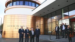Der einzigartige Neubau-Komplex mit insgesamt 36.000 Quadratmeter umbauter Fläche besteht aus sieben Hochhaustürmen, die an die siebenarmige Menora erinnern. Sie werden die 150 Jahre alte, klassizistische Synagoge einrahmen und himmel- hoch überragen. Später sollen die unterschiedlich hohen Türme – wie die Kerzen des Leuchters – im Laufe der Wochentage nach und nach angestrahlt werden.