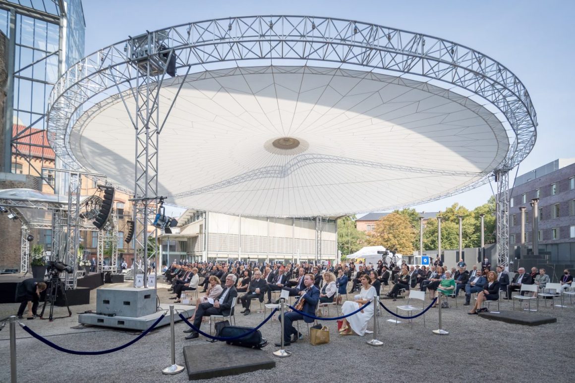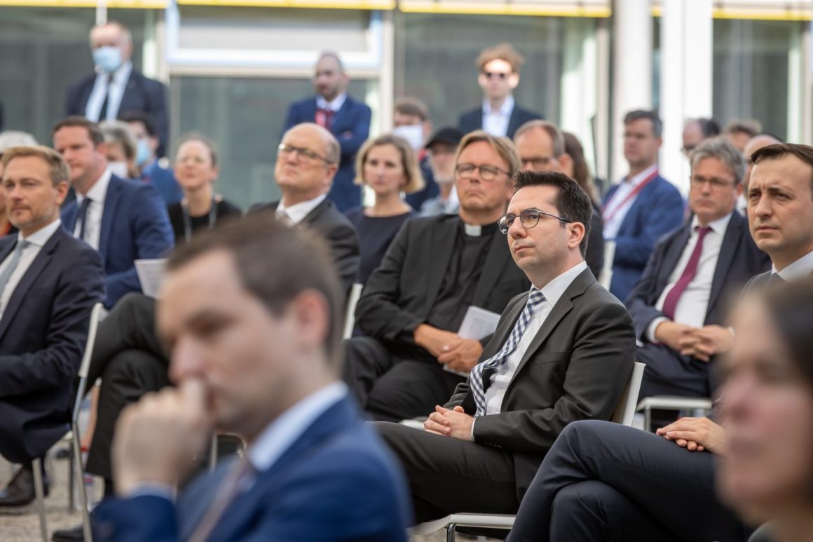 Eingefunden unter dem weißen Zeltdach hatten sich auch Brandenburgs Ministerpräsident Dietmar Woidke (SPD) als Bundesratspräsident, die Beauftragte der Bundesregierung für Kultur und Medien, Monika Grütters (CDU), der Beauftragte der Bundesregierung für jüdisches Leben und den Kampf gegen Antisemitismus, Felix Klein, die Beauftragte der Bundesregierung für Migration, Integration und Flüchtlinge, Annette Widmann-Mauz (CDU), Berlins Regierender Bürgermeister Michael Müller (SPD) und der Berliner Kultursenator Klaus Lederer (Die Linke).