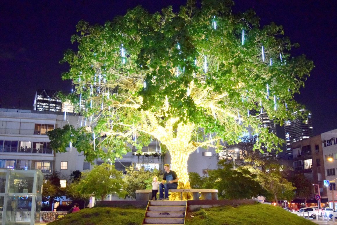 Neta und Yuval haben es sich richtig gemütlich gemacht. Mitten auf dem Rothschild-Boulevard in Tel Aviv sitzen sie auf zwei lila Plastikstühlen, Decken über ihren Knien, und prosten sich gegenseitig mit ihren Gläsern zu. »Auf das Leben und auf unsere Stadt, die heute besonders schön ist«, sagt Neta Baron, während sie sich verzückt umschaut. Denn über ihren Köpfen funkeln Bögen aus warmen Lichtern, die den Boulevard wie ein festliches Dach überspannen. Chanukka steht vor der Tür, und die Stadt Tel Aviv hat sich herausgeputzt.