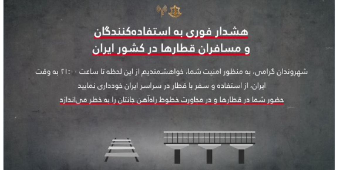 Das israelische Militär hat die Bevölkerung im Iran davor gewarnt, mit dem Zug zu reisen oder sich in der Nähe von Bahnstrecken aufzuhalten. Wer sich dort aufhalte, gefährde sein Leben, hieß es in einem auf Farsi formulierten Post auf der Plattform X. Die Warnung gelte ab sofort bis 21.00 Uhr Ortszeit (19.30 Uhr MESZ).