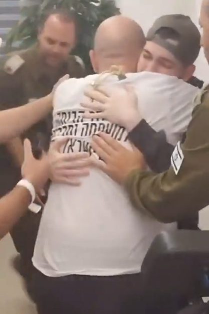Den ganzen Montag über haben sich unglaublich emotionale Szenen abgespielt. Eine der bewegendsten war sicherlich das Treffen von Bar Kuperstein mit seinem Vater Tal. Als die befreite Geisel in der Militärbasis Re’im angekommen war, stand sein Vater auf, um ihn zu begrüßen. Jahrelang hatte er im Rollstuhl gesessen – und extra für diesen Tag gelernt aufzustehen. »Ich werde stehen, wenn Bar nach Hause kommt«. Und er stand. Kein Auge lieb in diesem Moment trocken.