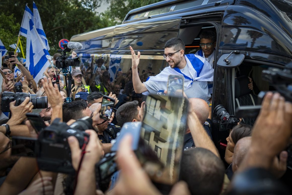 Dann dankte er der Menge, die Evyatar frenetisch empfing. Er sei sehr emotional und voller Liebe ob der Unterstützung. »Es ist sehr schwer, aber er erholt sich. Er ist ein starker Junge«, so der Vater. »Vielen Dank – wir lieben euch, ihr alle, die ihr immer bei uns wart. Es ist einfach so schön zu sehen, dass er und Guy nach der Dunkelheit im Tunnel endlich wieder ins Licht gekommen sind.«
