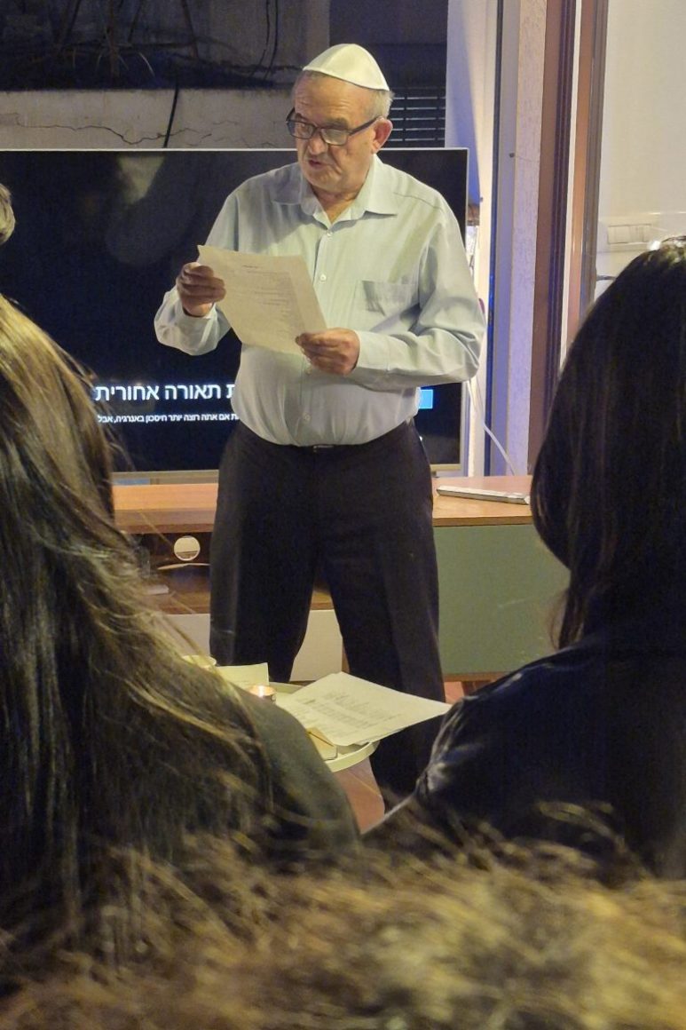 Auf einer Dachterrasse in Jaffa haben sich am Montagabend etwa 40 Menschen versammelt. Es gibt Tee, Kaffee und Kuchen. Im Mittelpunkt steht ein Mann: Zvi Levin, Holocaustüberlebender, der als Kind aus Weißrussland nach Israel immigrierte. Neben ihm sitzt seine Frau Tova, während er von der Geschichte seiner Familie erzählt. »Ich hatte keine Großeltern, keine Tanten und Onkel«, sagt Levin und muss sich beim Gedanken daran Tränen aus den Augen wischen. »Doch meine Eltern überlebten und bauten eine Familie in Eretz Israel auf.«