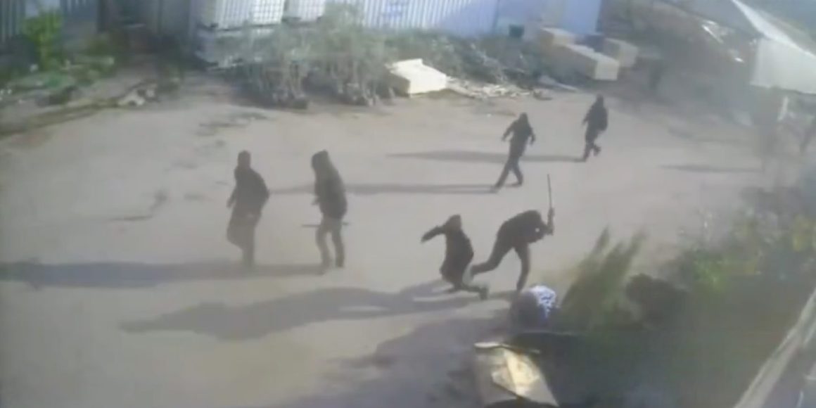 Überwachungskameras dokumentierten, wie mehrere maskierte Personen einen Mann attackierten, der auf dem Boden kniete. Er wurde von mehreren Angreifern getreten und mit Knüppeln geschlagen, bis er stürzte und die Täter flüchteten.