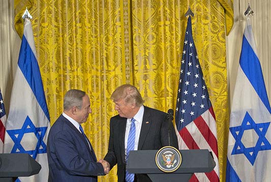 Es herrschte beinahe eine familiäre Atmosphäre: Trump verwies auf seine jüdische Tochter samt Schwiegersohn Jared Kushner und den Enkelkindern, während Netanjahu lachend hinzufügte, dass auch er Kushner von Kindesbeinen an kenne.