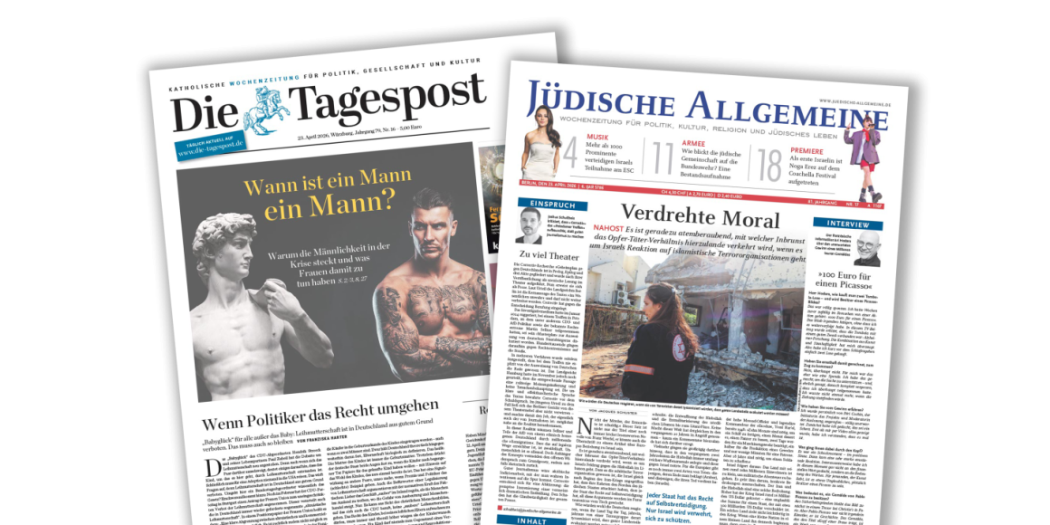 Die katholische Wochenzeitung »Die Tagespost« kooperiert in dieser Woche mit der »Jüdischen Allgemeinen«. Alle Abonnenten erhalten die »Jüdische Allgemeine«, die ebenfalls immer am Donnerstag erscheint, gratis dazu, wie die Zeitungen mitteilten. »Die Tagespost« enthält außerdem einen Gastbeitrag des Chefredakteurs der »Jüdischen Allgemeinen«, Philipp Peyman Engel.