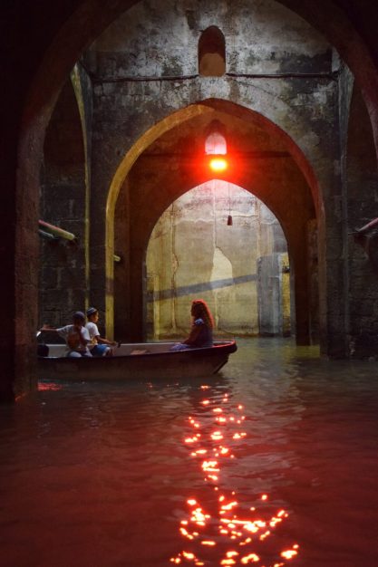 In einem Gefährt kichern zwei junge Leute. Ganz Kavalier, rudert der Mann seine Herzensdame langsam, aber mit starker Hand durchs Wasser, während diese sich Pralinen schmecken lässt. Es sind Yasmin und Ahmed. »Unser erstes Date«, sagt Yasmin und fügt an, dass ihr Gegenüber den Ort ausgesucht habe. »Romantischer geht es nicht.« Ahmed bedankt sich für die lobenden Worte mit einem Lächeln. Und beide scheinen zu erröten. Vielleicht ist es aber auch nur das schummrige Licht in diesem sonderbaren Gemäuer, das sich in den Gesichtern der Verliebten widerspiegelt.