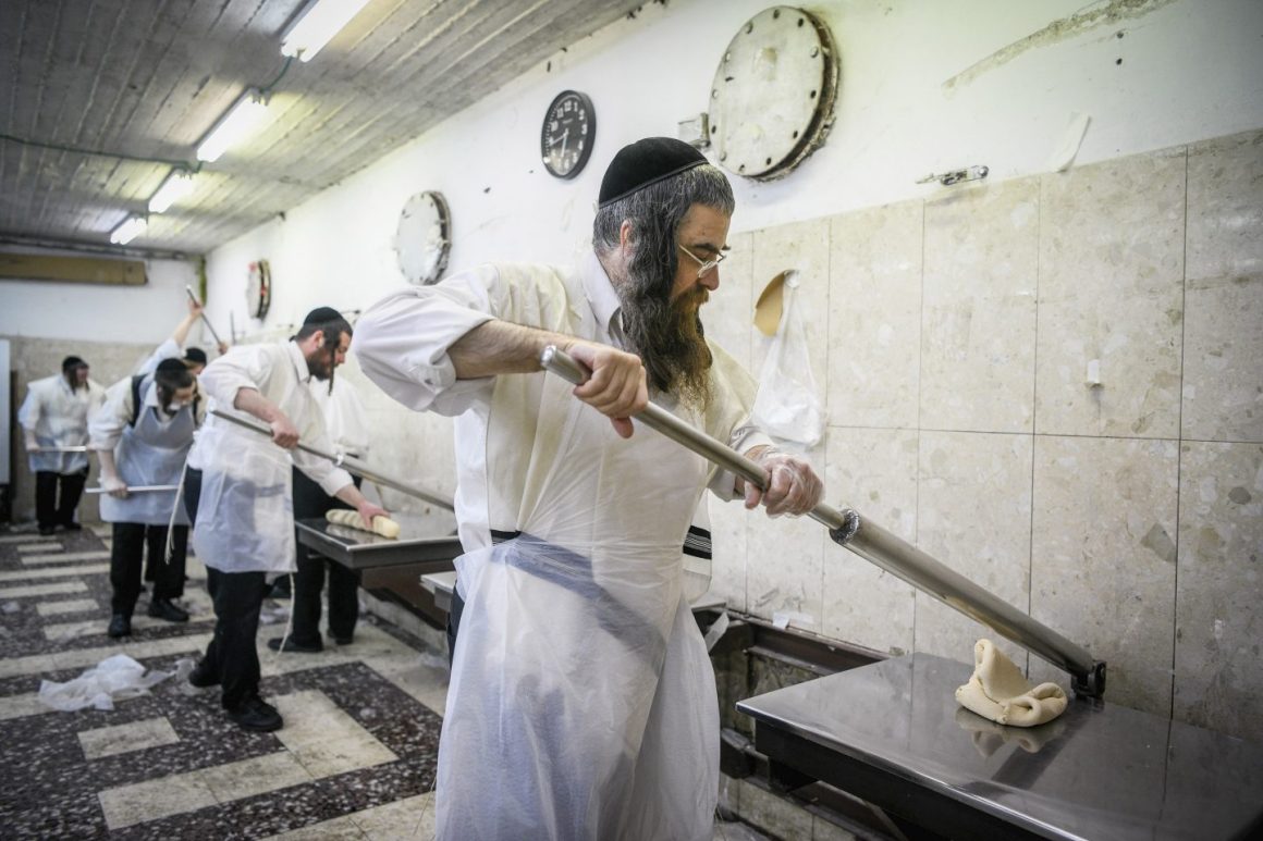 Während einige religiöse Volontäre mit Schläfenlocken das Mehl mit der Hand bearbeiten, drehen andere die Schwungräder der Mühlen, die daraus Mehl machen. Auch das, was sie als »unser Wasser« für die Mazzen bezeichnen, pumpen sie am Tag vor dem Backen vor Sonnenuntergang aus einer geheimen Bergquelle außerhalb Jerusalems ab.