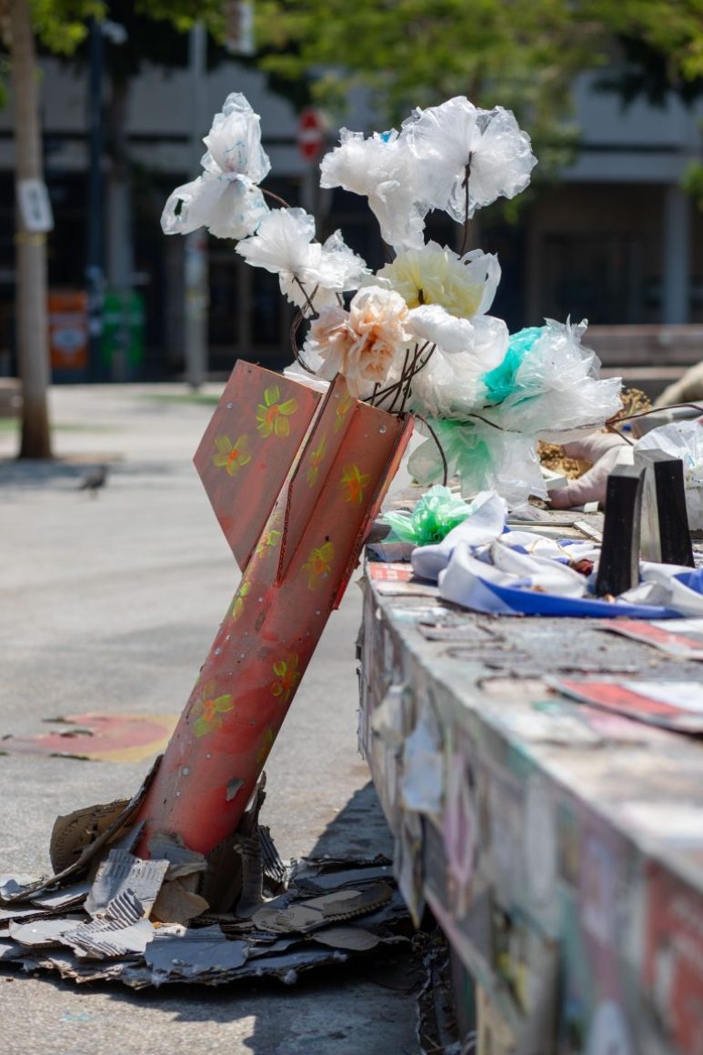 Und manchmal ist es auch ein Moment, in dem sich die Frage stellt, wie Erinnerung im öffentlichen Raum sichtbar wird und welche Form sie annimmt. Ein Ort, an dem diese Frage derzeit besonders greifbar ist, liegt mitten im Herzen der Stadt: auf dem Dizengoff-Platz. Dort entstand in den ersten Tagen nach dem verheerenden Hamas-Massaker vom 7. Oktober 2023 mit mehr als 1200 Toten ein improvisierter Gedenkort.