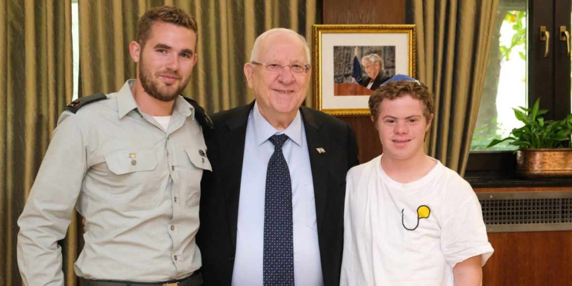 Sie sind beste Freunde, die einen gemeinsam Abenteuerurlaub verbrachten. Eigentlich ganz normal. Doch die Freundschaft dieser beiden ist alles andere als selbstverständlich: Benaya Sherlow ist Artillerieoffizier in der israelischen Armee, Benayahu Gross ein Teenager mit Down-Syndrom. Sherlow ist seit zehn Jahren als freiwilliger Helfer im Leben des Schülers und unterstützt ihn. Jetzt besuchten sie Präsident Reuven Rivlin in Jerusalem.