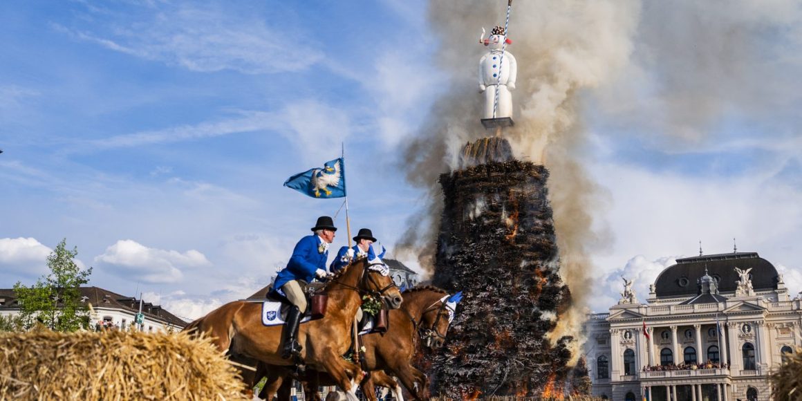 Neben den Kamelen haben auch die allerschönsten Pferde ihren großen Auftritt an dem Tag, sie reiten zum Abschluss des Umzugs gar um einen brennenden »Böögg«, ein Schneemann, der angezündet wird, um den Winter zu vertreiben.