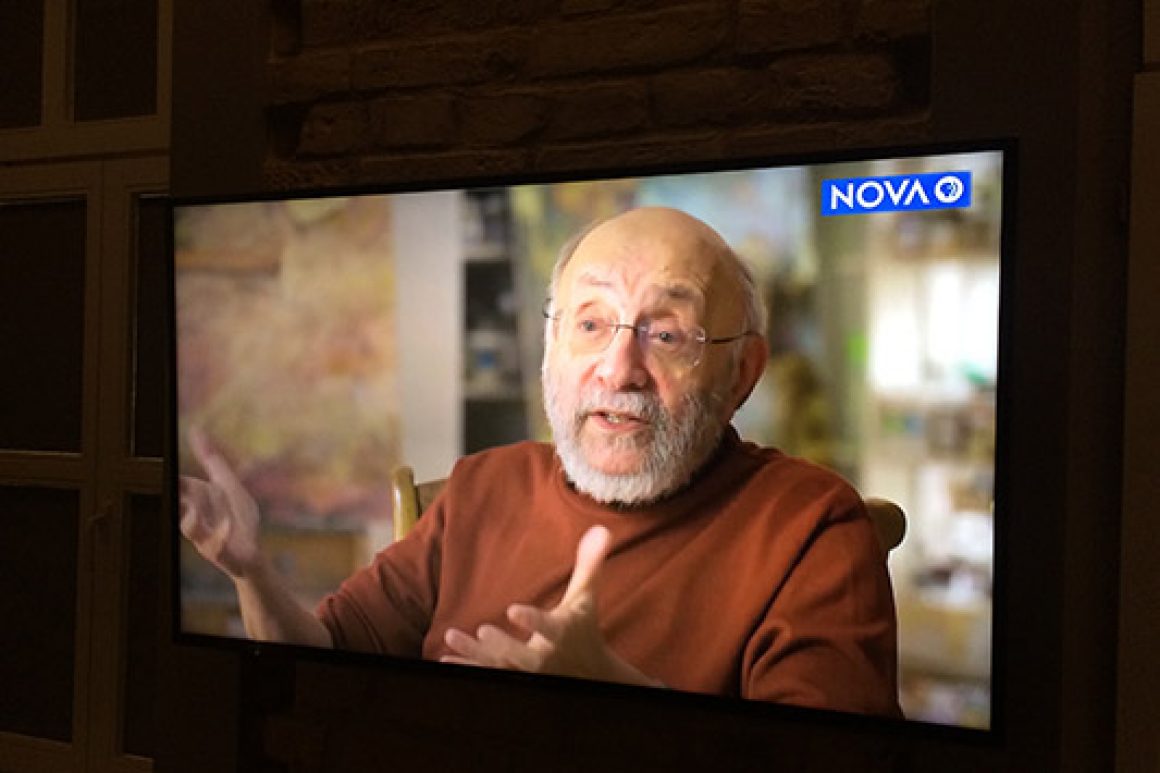 Zwischen den Ausstellungsflächen tauchen auch immer wieder kleine Monitore auf, aus denen der Maler über seine Kunst und seine Biografie spricht. Einmal im Monat bietet das Museum sogar einen Live-Chat mit Samuel Bak an, bei dem der Künstler von seinem Wohnort in Boston den Besuchern in Vilnius Rede und Antwort steht.