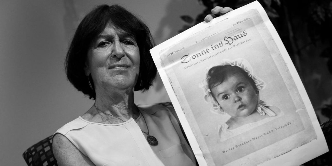 Die Geschichte hinter dem Bild gehört zu den bittersten Ironien der NS-Propaganda. Hessy Lewinsohn (Geburtsname) kam 1934 in Berlin als Tochter zweier jüdischer Opernsänger aus Lettland zur Welt. Als sie wenige Monate alt war, ließen ihre Eltern ein Porträt von ihr anfertigen – ohne zu ahnen, dass der Fotograf das Bild an die nationalsozialistische Propagandamaschinerie weiterreichen würde.
