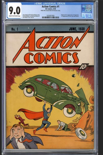 Für 15 Millionen Dollar ist ein 1938 erschienener Superman-Comic von einem anonymen Sammler gekauft worden. Das Heft kostete damals zehn Cents. Auf dem Cover ist Superman zu sehen, wie er ein grünes Auto in die Luft hebt. Echt stark – beides!