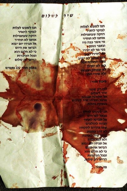 Ich verstehe das. Aber ich kenne keinen anderen Weg. Und ich finde keine besseren Worte als das »Schir La-Shalom«, das »Lied des Friedens«, das Rabin auf der Demo am 4. November 1995 als Manuskript bei sich trug und mitsang – in falscher Tonlage mit seinem tiefen Bass. Das Lied von Yaakov Rotblit von 1969, das sich jetzt anhört wie Rabins Vermächtnis: »Hebt die Augen in Hoffnung, anstatt durch Visiere zu schauen. (…) Sagt nicht, der Tag wird kommen, sondern führt den Tag herbei.«