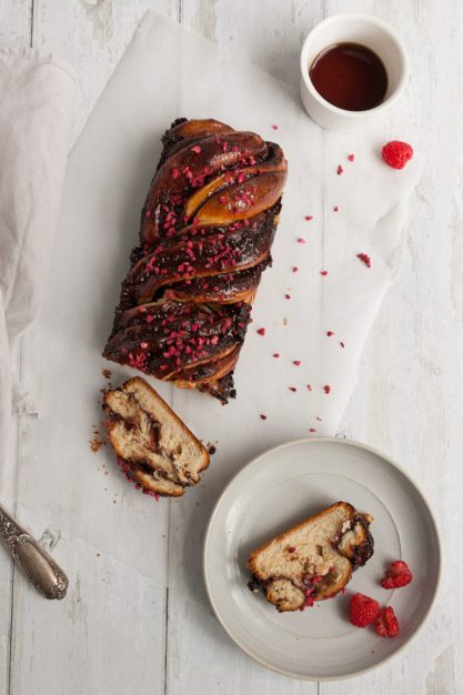 Danach den Teig in vier Stücke teilen und sie flach ausrollen. Die Himbeermarmelade gleichmäßig darauf verteilen und von der langen Seite zu einer Teigschlange aufrollen. Nun den Backofen auf 200 Grad vorheizen. Eine Teigschlange mit einem scharfen Messer längs halbieren und beide Seiten ineinander schlagen. Mit den anderen drei ebenso verfahren. Die Babkas in vier Formen legen. 20 bis 25 Minuten backen, bis der Teig goldgelb ist. kat
