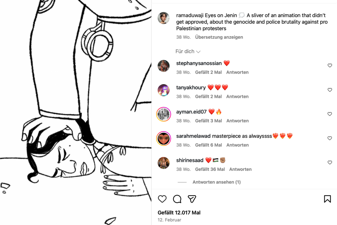 Doch Duwaji dämonisiert Israel in den ihre Illustrationen begleitenden Posts als den einzigen schuldtragenden Part im Gaza-Krieg. Sie schreibt von »Genozid« an den Palästinensern und ethnischer Säuberung. Sie beklagt die Gewalt gegen »Pro Palästina«-Demonstranten in den USA und die Festnahme Mahmoud Khalils, fordert ihre Leser auf, sich zu wehren: »resist«. Wenn sie schreibt, Käthe Kollwitzʼ Radierung »Frau mit totem Kind« sei »too familiar«, dann meint sie offenbar genau das, was Latuff oder Mansour meinen: Die Palästinenser sind Opfer, die Israelis das Böse.
