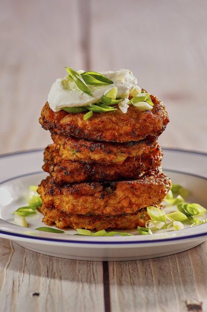 Die Latkes schmecken am besten, wenn sie ganz frisch und knusprig sind. Dazu passt Kräuterquark oder Sour Cream. kat
