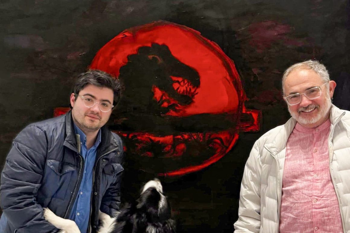 Unterdessen lautet eine ähnlich bogenförmige Inschrift über dem schwarzen Schattenriss eines angreifenden Tyrannosaurus Rex »Welcome to Jewish Museum«. Wie auch die wiederkehrenden oder niemals richtig verschwundenen Saurier der Urzeit aus Steven Spielbergs Blockbuster Jurassic Park, der etwa gleichzeitig mit seinem Meisterwerk Schindlers Liste entstanden ist, ein zentrales Motiv von Kharchenko darstellen.