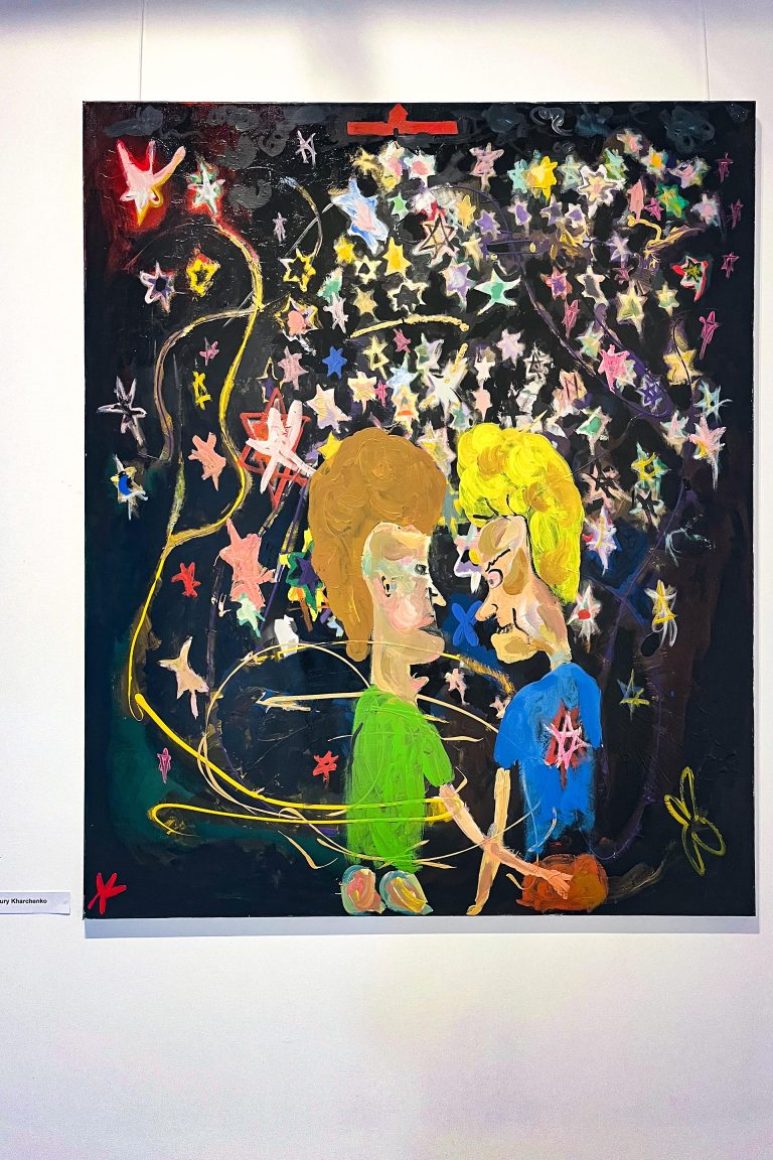Davidsterne sind auch ein zentrales Motiv von Yury Kharchenko und nehmen bei ihm unterschiedliche Formen, Farben und Bedeutungen an. Er malt einzelne umgestaltete Sterne der israelischen Armee (IDF) und stellt den derben Comic-Figuren Beavis und Butt-Head (aus der US-Zeichenserie auf MTV) vor dem fernen Tor von Auschwitz lauter wunderbare, schönen Sterne gegenüber.