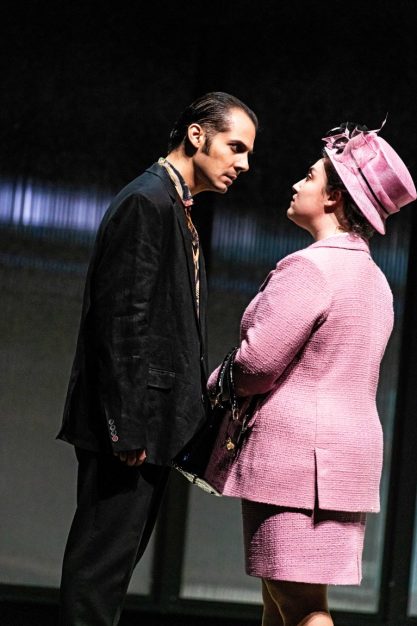 TRENNWAND Die Bühne von Ausstatter Gideon Davey besteht aus einer schwebend-beweglichen durchscheinenden Trennwand. Dahinter gibt es zwei Glasboxen als Hütte der Kleinfamilie mit Kind. Die Bauernbevölkerung kommt als festlich aufgehübschte Hochzeitsgesellschaft von heute daher. Bei den Roma ist das Ganze etwas bunter. Dazu gibt es eine Chorregie und Personenführung, die eher arrangiert und zum Teil recht unbeholfen wirkt. Hier scheitert »nur« ein Emanzipationsversuch zweier Liebender, die ihren sozialen und kulturellen Prägungen letztlich nicht entkommen.