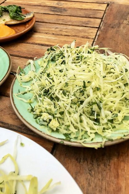 Abschließend das Dressing unter den Salat heben. Wer mag, kann noch frische Kräuter oder auch Rosinen oder Granatapfelkerne dazugeben. Der Salat ist eine echte Vitaminquelle im Veganuary. Und wer so gar nicht ohne auskommt: Dazu passen Merguez oder auch Fisch. kat
