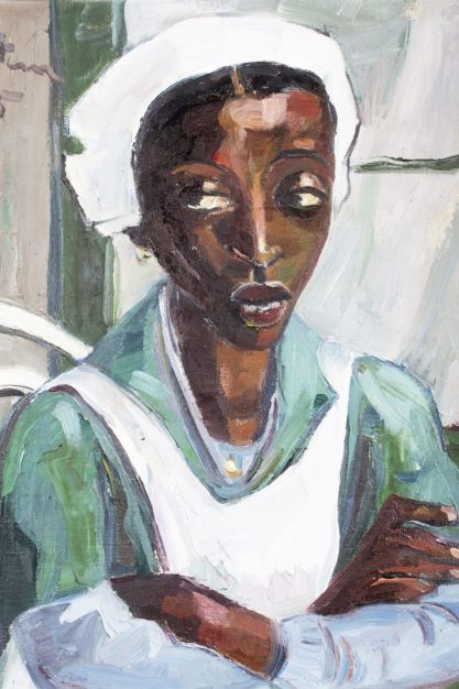 Von dort ist es ein weiter Weg bis zur »Maid in Uniform« (1955). Das Bild kann beinahe als die Ikone der Berliner Retrospektive gelten. Es zeigt eine dunkelhäutige Frau mit weißer Schürze und Haube, die durch ihre Kleidung als Dienstmädchen zu erkennen ist. Mund und Augen sind übergroß. Die lässig verschränkten Arme und ein Blick, der trotzig, beinahe herablassend zur Seite geht, zeugen von Selbstbewusstsein und Autonomie. Das karge, schlichte und gleichzeitig beeindruckend-einnehmende Porträt beschließt den Rundgang durch das Museum und bringt auf seine Art das Dilemma zum Ausdruck, dem die Kuratoren zu erliegen scheinen.