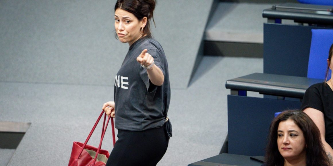 Die 31-jährige Politikerin aus Nordrhein-Westfalen warf der Parlamentsmehrheit vor, sie wolle das Leid in Gaza »wegignorieren«. Weiter schrieb sie: »In Gaza sterben jeden Tag Menschen. Es gibt keine Essenslieferung mehr. 100% der Palästinenser*innen hungern. Währenddessen im Bundestag: CDU-Außenminister Johann Wadephul bekräftigt, dass Deutschland weiter Waffen an Israel liefern will. Waffen für Kriegsverbrechen an der Zivilbevölkerung. Und dann missbraucht Bundestagspräsidentin Julia Klöckner auch noch ihr Amt und wirft mich aus dem Plenum, weil auf meinem T-Shirt ‚Palestine‘ steht.« Auf der Plattform X legte sie nach: »Ihr habt alle dermaßen versagt.«