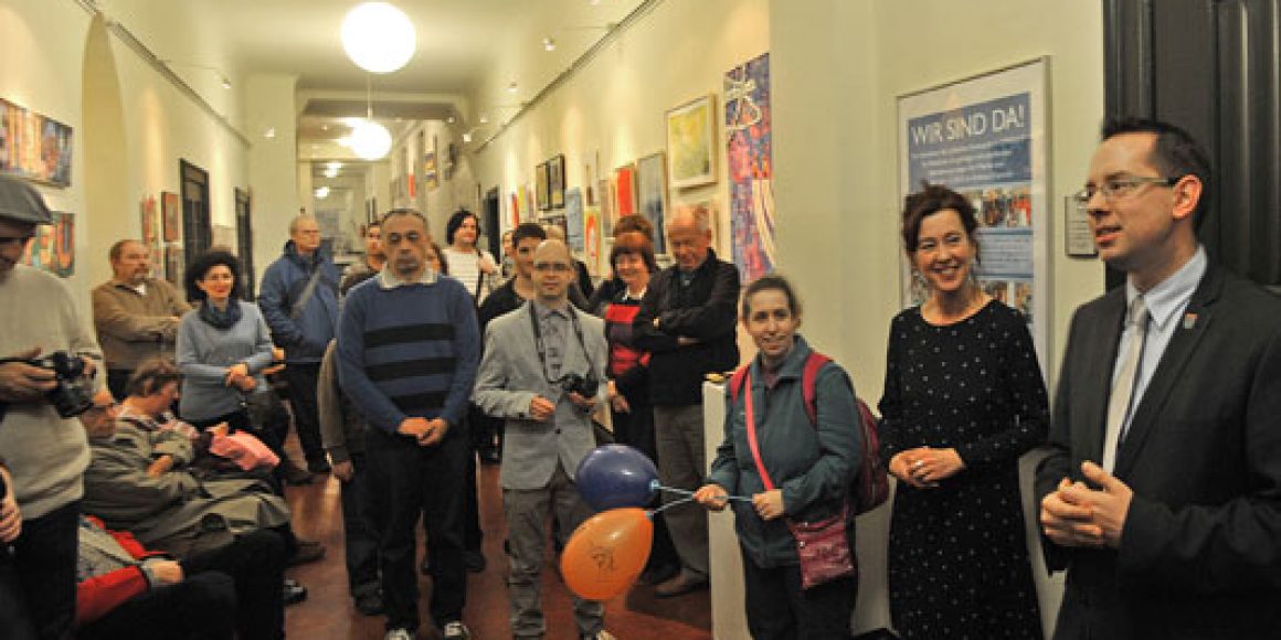 Das Projekt, das auch von der Aktion Mensch gefördert wird, bietet eine freiwillige und kostenlose Tagesbetreuung mit künstlerischen Tätigkeiten und vielfältige Beratung an. Zum Atelier gehören eine Kerzenwerkstatt und die Arbeit mit unterschiedlichsten Techniken. Es ginge darum, dass alle zusammen »etwas Schönes machen«, so die Leiterin und Kunsttherapeutin Judith Tarazi bei ihrer Ansprache. »Wir, die Betreuer, freuen uns, dass ihr es uns ermöglicht habt, die Ausstellung zu verwirklichen.« Die Teilnehmer hätten der Eröffnung entgegengefiebert und sich sehr darauf gefreut.