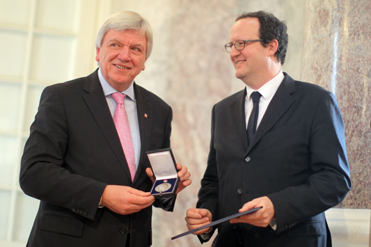 Der Direktor des Fritz-Bauer-Instituts und des Jüdischen Museums in Frankfurt am Main, Raphael Gross, ist mit der Wilhelm-Leuschner-Medaille ausgezeichnet worden. Die höchste Auszeichnung des Landes Hessen erhielten am Sonntag zwei weitere Geisteswissenschaftler: der Direktor des Deutschen Polen-Instituts in Darmstadt, Dieter Bingen, und Harald Müller von der Hessischen Stiftung Friedens- und Konfliktforschung (HSFK) in Frankfurt.