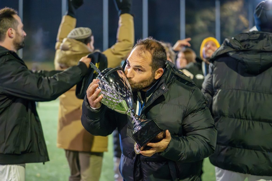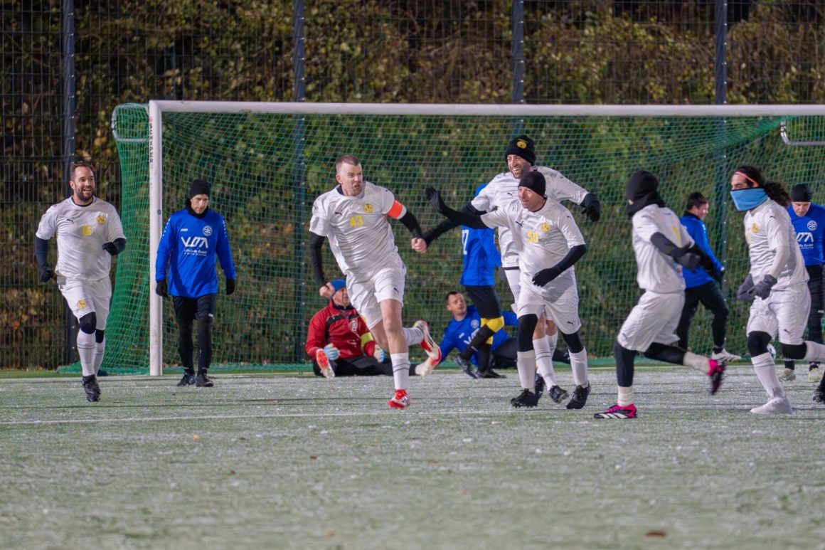 Für die jubelnden Sieger, die schnell in dicke Jacken geschlüpft waren, gab es im Anschluss den verdienten Pokal. Und alle Teilnehmer bekamen Medaillen mit blau-weißem Band und einem Foto von Ilan Fiorentino. Kapitän Erez zeigte sich mit seiner eigenen und der Teamleistung zufrieden. Zwei Tore gehen auf sein Konto. Das erste Spiel im rheinischen Schnee, es hat also geklappt.