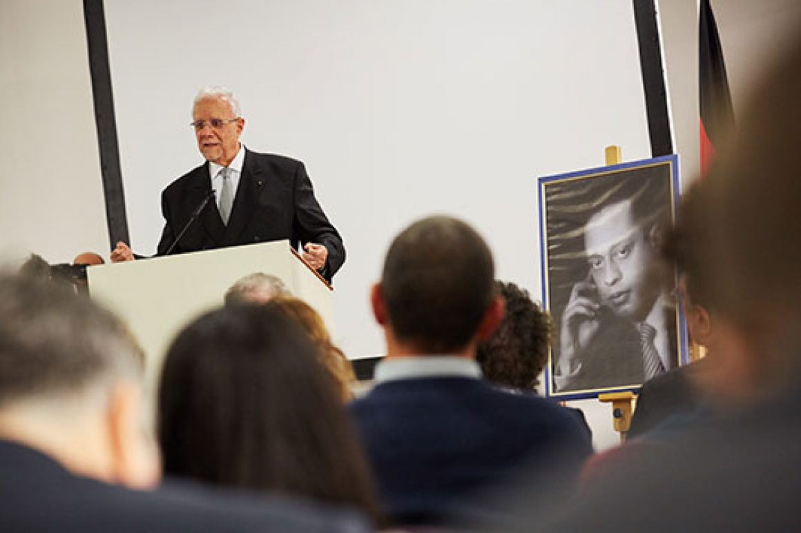 Der 86-Jährige ist den weiten Weg von Kairo nach Berlin gereist, um eine Ehrung entgegenzunehmen – postum für seinen 1982 in Berlin verstorbenen Onkel, dessen zeitlos eleganten Anzug er trägt.