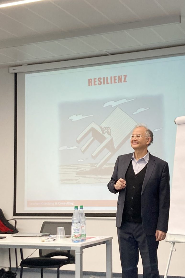 Mit verschiedenen Anekdoten aus seinem Leben und der eigenen Karriere versehen, ging auch der Psychologe Louis Lewitan in seinem zweiteiligen Workshop »Resilienter Umgang mit sich und mit Schülerinnen und Schülern« auf das Zusammenspiel von Beziehung zu sich selbst und Beziehung zu den Schülerinnen und Schülern ein. Denn es ging um Resilienz, um Stress und eigene Bedürfnisse – der Mensch strebe nach Kontinuität und Stabilität, und der Verlust der vermeintlichen Kontrolle löse Stress aus. Dabei sei das Leben in den meisten Bereichen doch viel näher am »Balagan«.