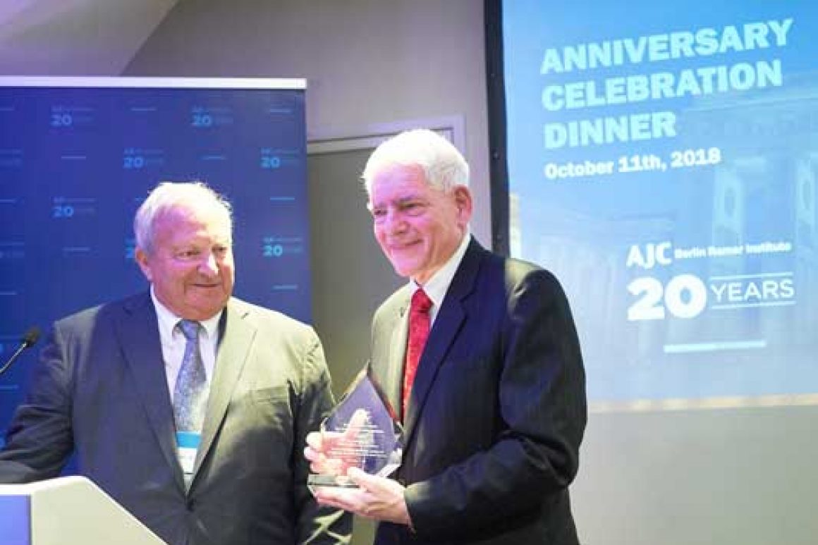 Delegation Die Preisverleihung fand im Rahmen des 20-jährigen Deutschland-Jubiläums des AJC statt. Als erste amerikanisch-jüdische Organisation eröffnete das AJC 1998 eine Dependance in Berlin, das AJC Berlin Ramer Institute. Aus Anlass des Jubiläums war eine Delegation zu politischen Gesprächen nach Berlin gekommen.