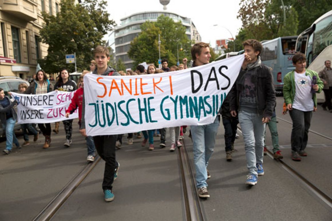 Vom Hauptgebäude des Gymnasiums in der Großen Hamburger Straße zogen sie entlang der Oranienburger Straße vor den Sitz des Vorsitzenden der Jüdischen Gemeinde, Gideon Joffe, um ihn aufzufordern, den Lehrern höhere Gehälter zu zahlen und mehr Geld in ihre Schule zu investieren. In einer vorab von den Schülern entworfenen Resolution hieß es, der Fortbestand des vor 20 Jahren gegründeten Gymnasiums sei in Gefahr, wenn die Gemeinde als Träger der Schule ihrer Verantwortung nicht gerecht werde.