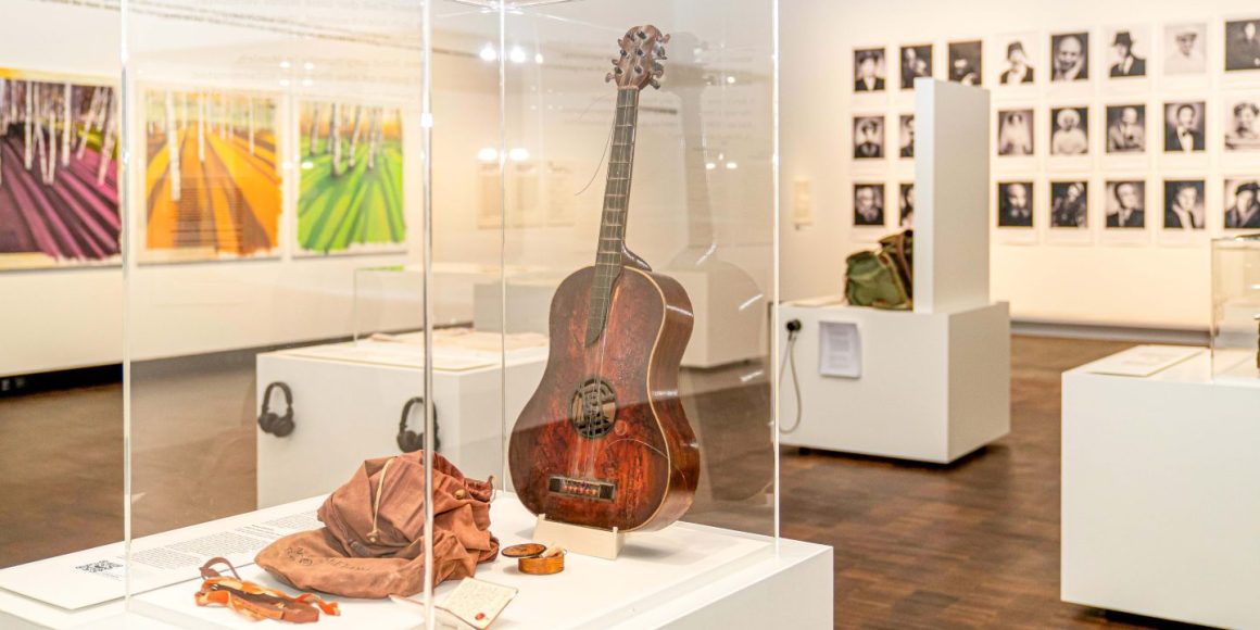Die Gitarre zeigt sich aufrecht stehend auf einem tischhohen, weißen Quader. Unten am Korpus gehalten von einem kleinen metallenen Ständer und geschützt unter einer Glashaube ist sie in der Mitte des weiträumigen Ausstellungsraums in der ersten Etage des Jüdischen Museums München (JMM) zu sehen. Einige ihrer Saiten hängen lose. Das Instrument ist eines der Exponate der sich über zwei Stockwerke erstreckenden, ebenso vielschichtigen wie aufregenden Ausstellung Die Dritte Generation – Der Holocaust im familiären Gedächtnis.
