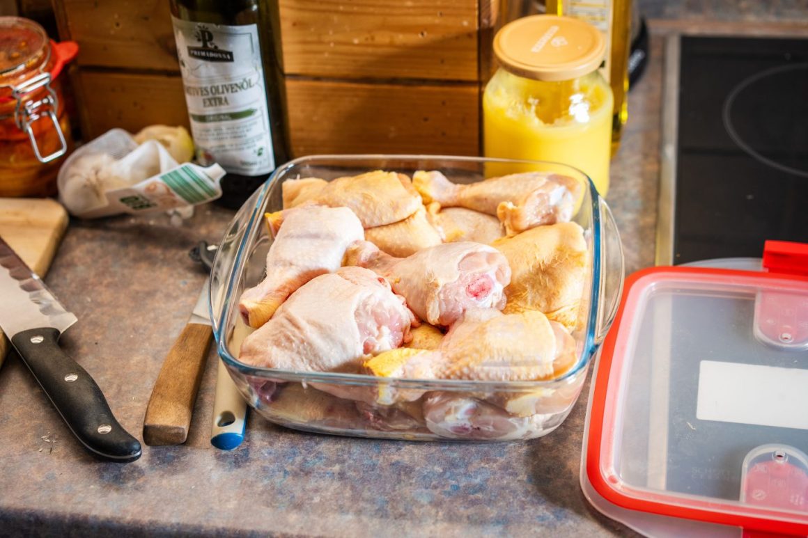 Dann wandern 14 Hühnerbollen in den Airfryer. Auf ein kurzes Zischen folgt der Geruch von krosser Hühnerhaut, der von der Küche bis ins Wohnzimmer zieht.