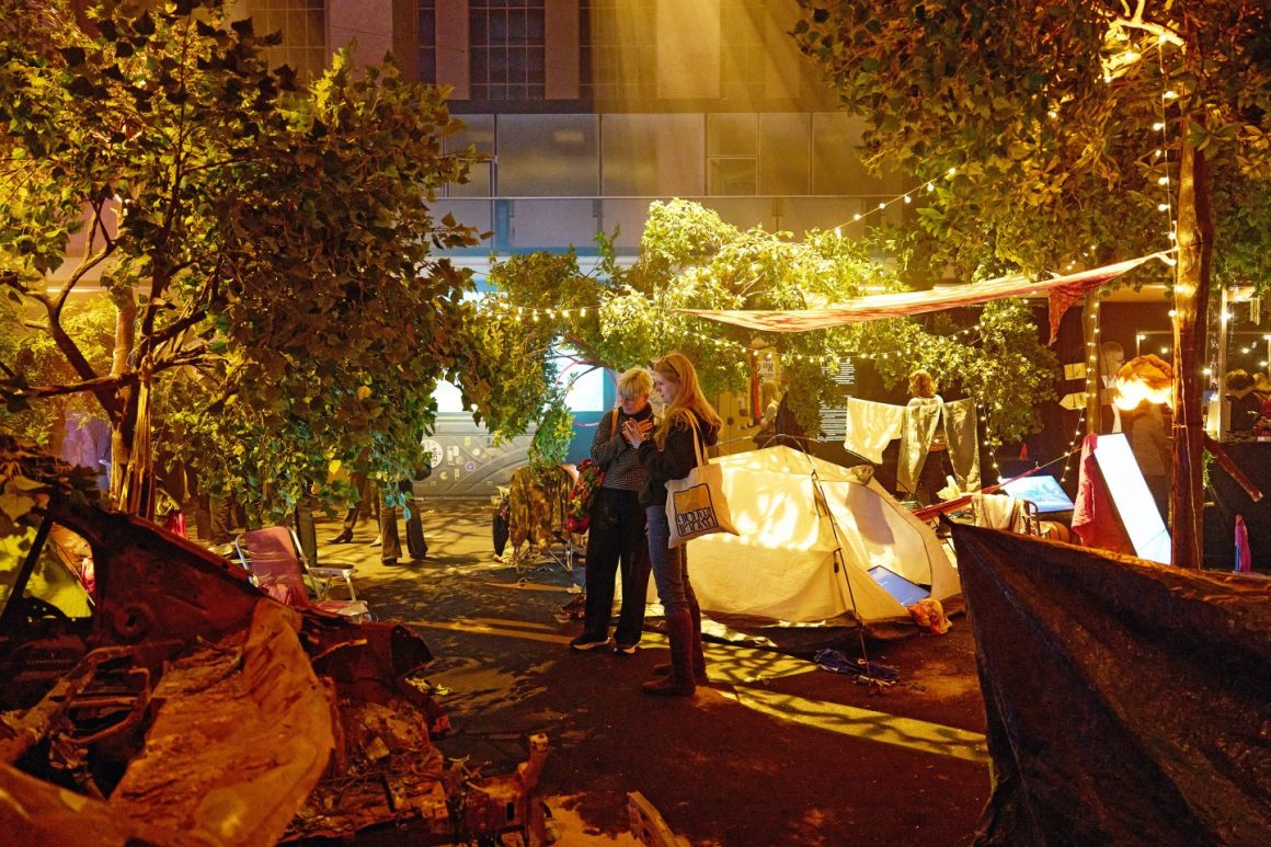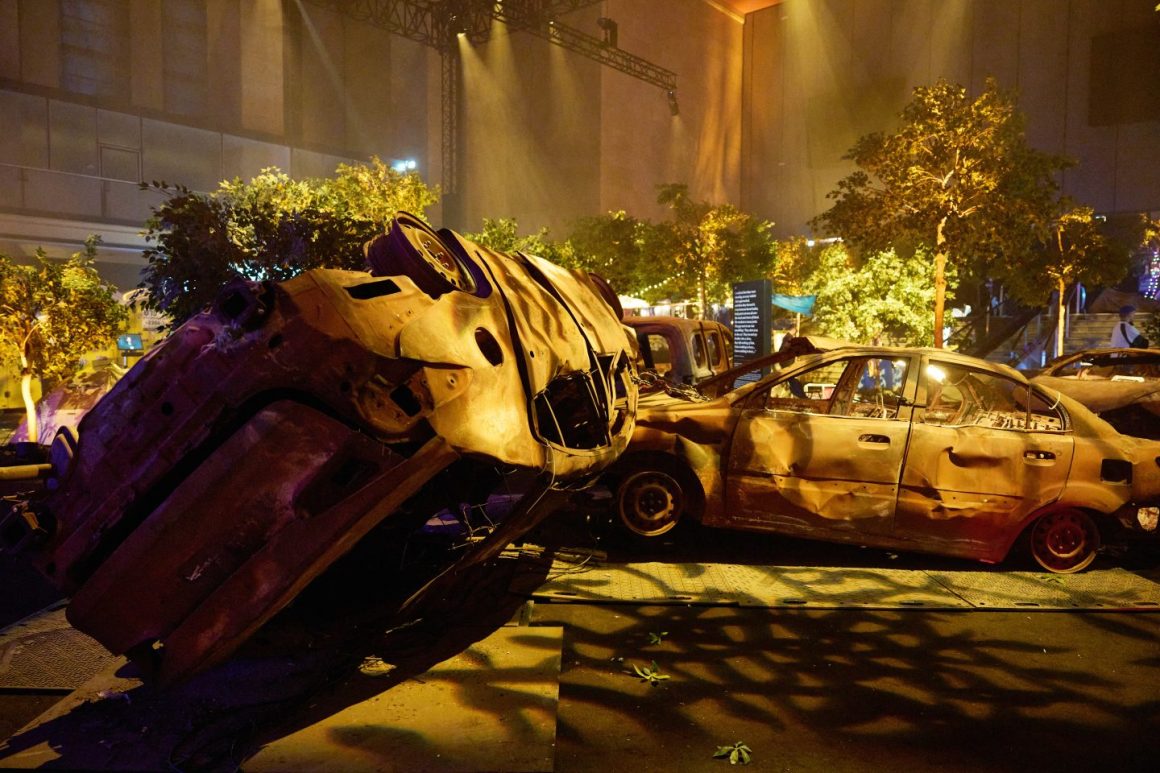 Freiheit und Ausgelassenheit stehen am Anfang eines rund eineinhalbstündigen Rundgangs. Ein Film zeigt unbeschwerte Menschen beim Tanzen, die erzählen, dass dieses Festival als besonders friedlich gelte. Dann stoppt die Musik, eine Sirene ist zu hören und die Rufe: »Zewa Adom! Roter Alarm! Schnappt euch eure Sachen und verlasst diesen Ort!«