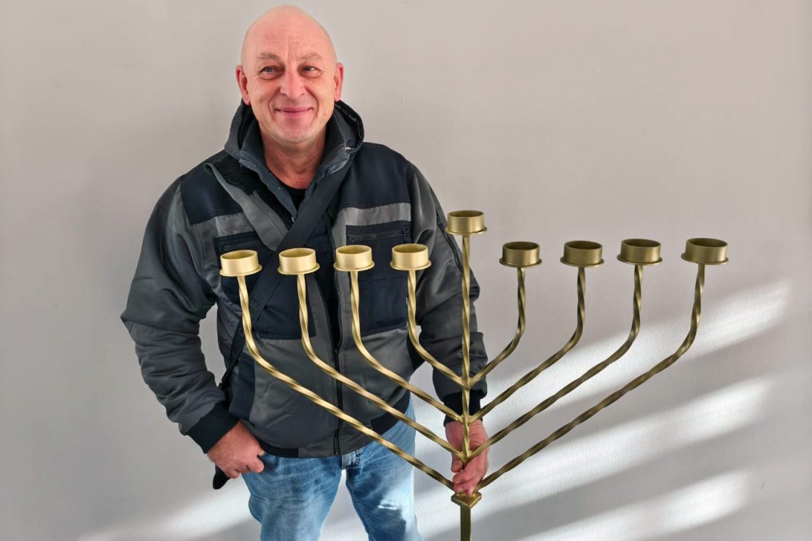 Seit März 2022 ist Viaceslavas Nikonovas bei der Jüdischen Gemeinde zu Dessau als Hausmeister angestellt. »Eine gemeinsame Bekannte gab mir damals den Tipp, mich zu bewerben«, berichtet er. Seitdem ist sein Bekanntenkreis deutlich gewachsen – er hat viele neue Menschen kennengelernt. Besonders die älteren Gemeindemitglieder mögen ihn. Denn zu seinen Aufgaben gehört es auch, ihnen bei Bedarf zu helfen: Lampen aufzuhängen, kleine Reparaturen zu übernehmen oder für sie einzukaufen. Da Nikonovas handwerklich sehr geschickt ist, hat er für die Gemeinde eigenhändig eine Chanukkia zusammengeschweißt, die jedes Jahr neu aufgebaut wird.