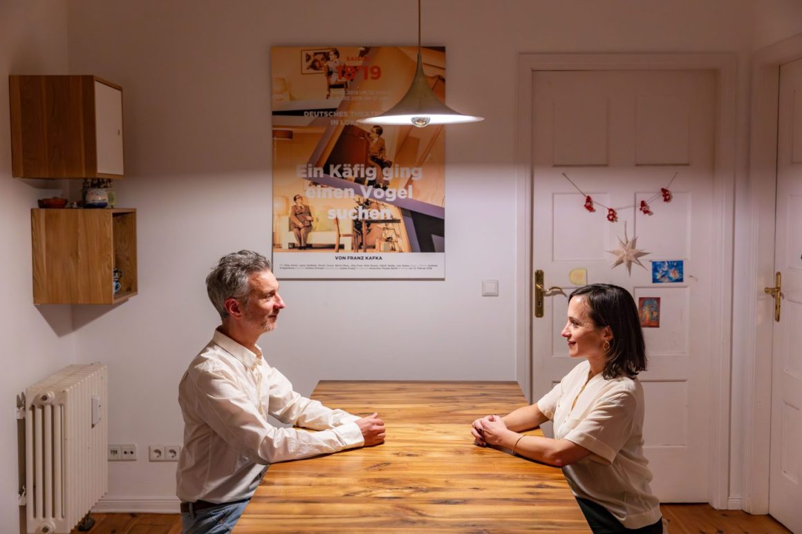 An einem eiskalten Wintertag in einer Maisonette-Wohnung in Berlin: Laura und Tobias Goldfarb sitzen auf den schwarzen Freischwingern, auf denen sonst ihre Klienten Platz nehmen. Perspektivwechsel also, Rollentausch – etwas, das den beiden nicht nur in der therapeutischen Arbeit vertraut ist. Der Kamin in einer Ecke des Zimmers spendet angenehme Wärme, an der Wand moderne Kunst, im Bücherregal neben dem großen Sofa Werke von Franz Kafka, Joseph Roth und Yuval Harari. Durch die Fensterfront schaut man auf eine kleine Dachterrasse, der Blick wandert vom Hinterhof in Prenzlauer Berg über das Häusermeer der Großstadt. Drinnen stehen Tee und Wasser bereit, es gibt Kekse und Gummibärchen.