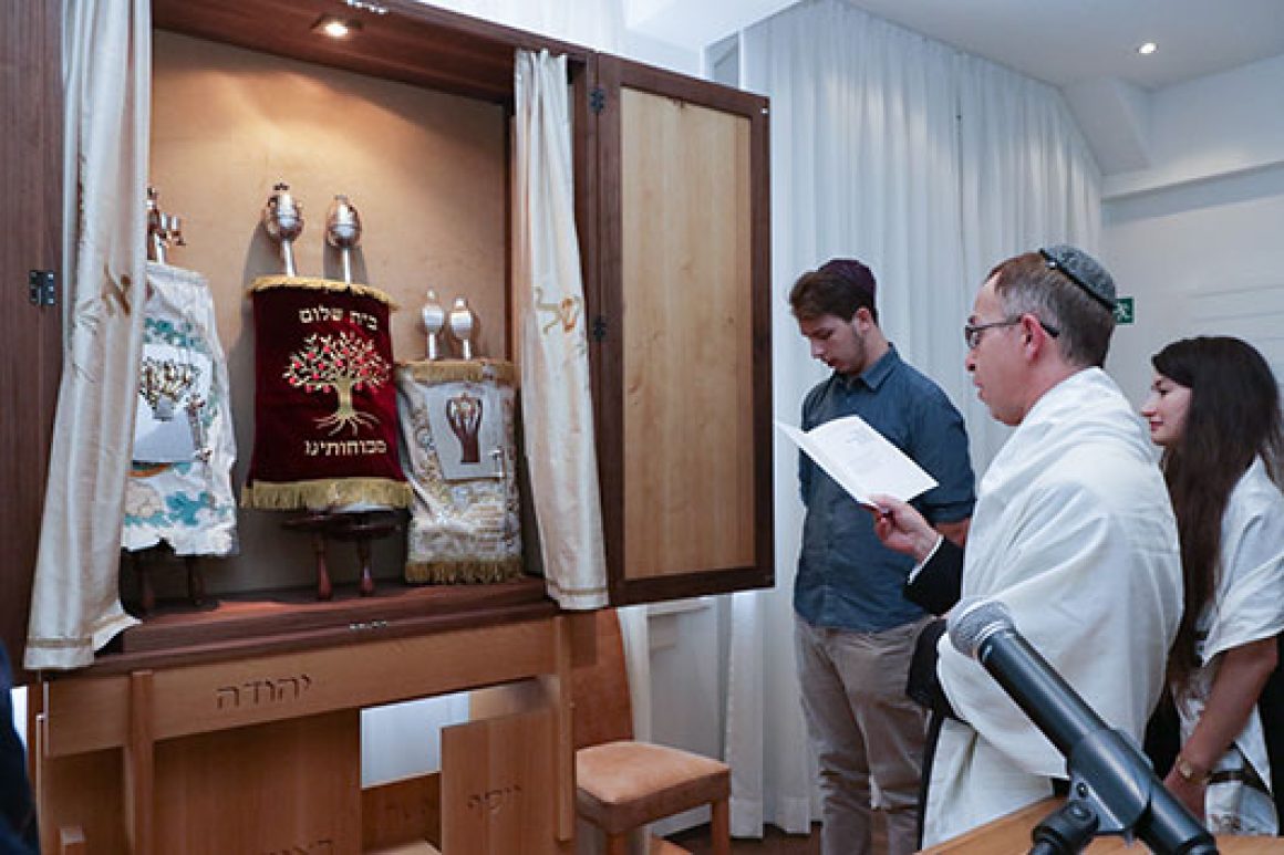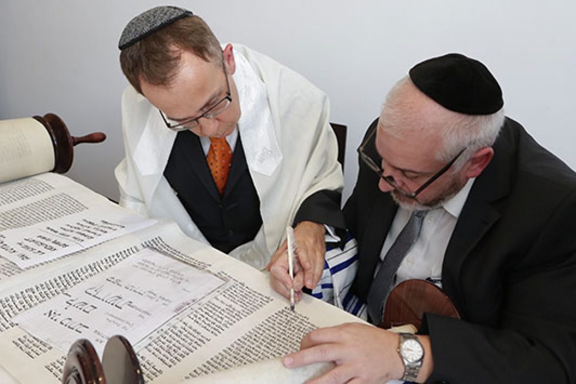 Im hellen Gemeinderaum herrscht aufgeregtes Treiben. Stühle werden gerückt, Tallitot durchgereicht, Kinder hochgehoben, geküsst, und dazwischen stehen Menschen in einer Reihe an. Sie dürfen die neue Tora »vollenden«. Eine Liste kursiert mit 41 namentlich Genannten, »Mitgliedern und Freunden« der Münchner Liberalen Gemeinde Beth Shalom, die dazu beigetragen haben, dass an diesem Septembersonntag in der Gemeinde eine neue Torarolle eingebracht werden kann. Ganz nahe dürfen sie dabei sein, ihre Hand auf den mit einem Tallit bedeckten Arm des Schreibers legen, der mit seinem Federkiel die letzten 41 Buchstaben nachzieht.